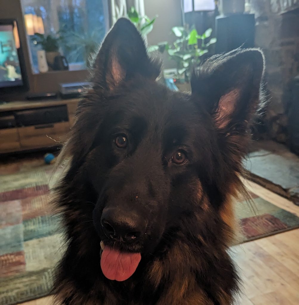 I have a fondness for cheese, chicken, and eggs, and I adore going for walks, but my absolute favourite activity is chasing after the ball. Occasionally, Dad has to call out for me to come in and eat my dinner because I get so caught up in playing with my favourite big ball outside!
